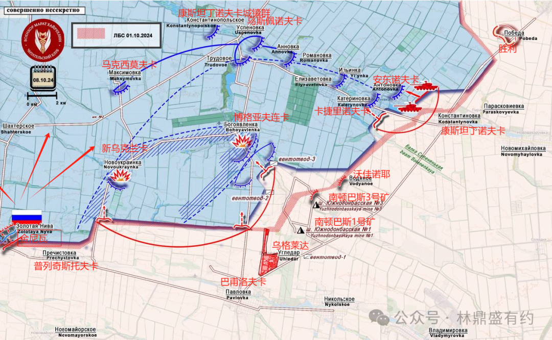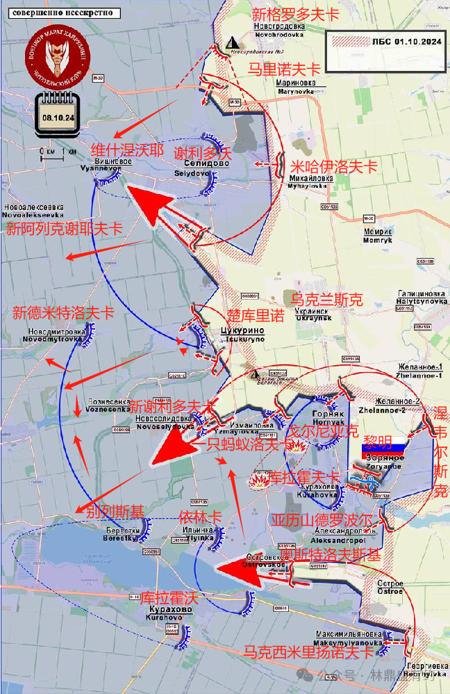 🔴俄軍強勢迂迴攻擊新謝利多夫卡和一隻螞蟻洛夫卡之間的間隙,目標似乎很明確,一直攻擊到別列斯基,從而在庫拉霍沃以北,構建一個超級包圍圈。當然,過程中,很有可能由於包圍效應,而先期陸續奪取一隻螞蟻洛夫卡-戈爾尼亞克-庫拉霍夫卡-亞歷山德羅波爾。 如此,別列斯基-依林卡也都屬於無根之水,都容易被俄軍一併解決。所以,面對大面積地盤有被包圍的險情,烏軍最好是向新謝利多夫卡方向增兵反擊,否則,若無增兵反擊,那麼,最好是提前放棄新謝利多夫卡和庫拉霍沃之間的大片區域,否則,一旦包圍圈完成,烏大軍將很難逃出戰場,不能渡河往庫拉霍沃逃吧?當然,烏軍指揮部經常出現,即使被包圍了,也未下令撤軍的情況,導致很多情況下,類似於烏格萊達一樣,包圍圈內的烏軍可能會成了死士。按理説,存人失地,存地失人,這方面,雙方都懂的。尤其是扎盧日內主持的情況下,這種面對被包圍危險之前的提前撤軍情況比較普遍,比如,當時在被包圍之前,提前從利西昌斯克撤軍,就是這個體現。