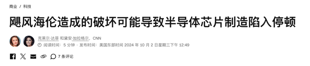 像外媒金融時報這篇報道了颱風過境 Spruce Pine 的文章,就直接上升到了 “ 全球芯片製造業受到重創 ” 的高度。