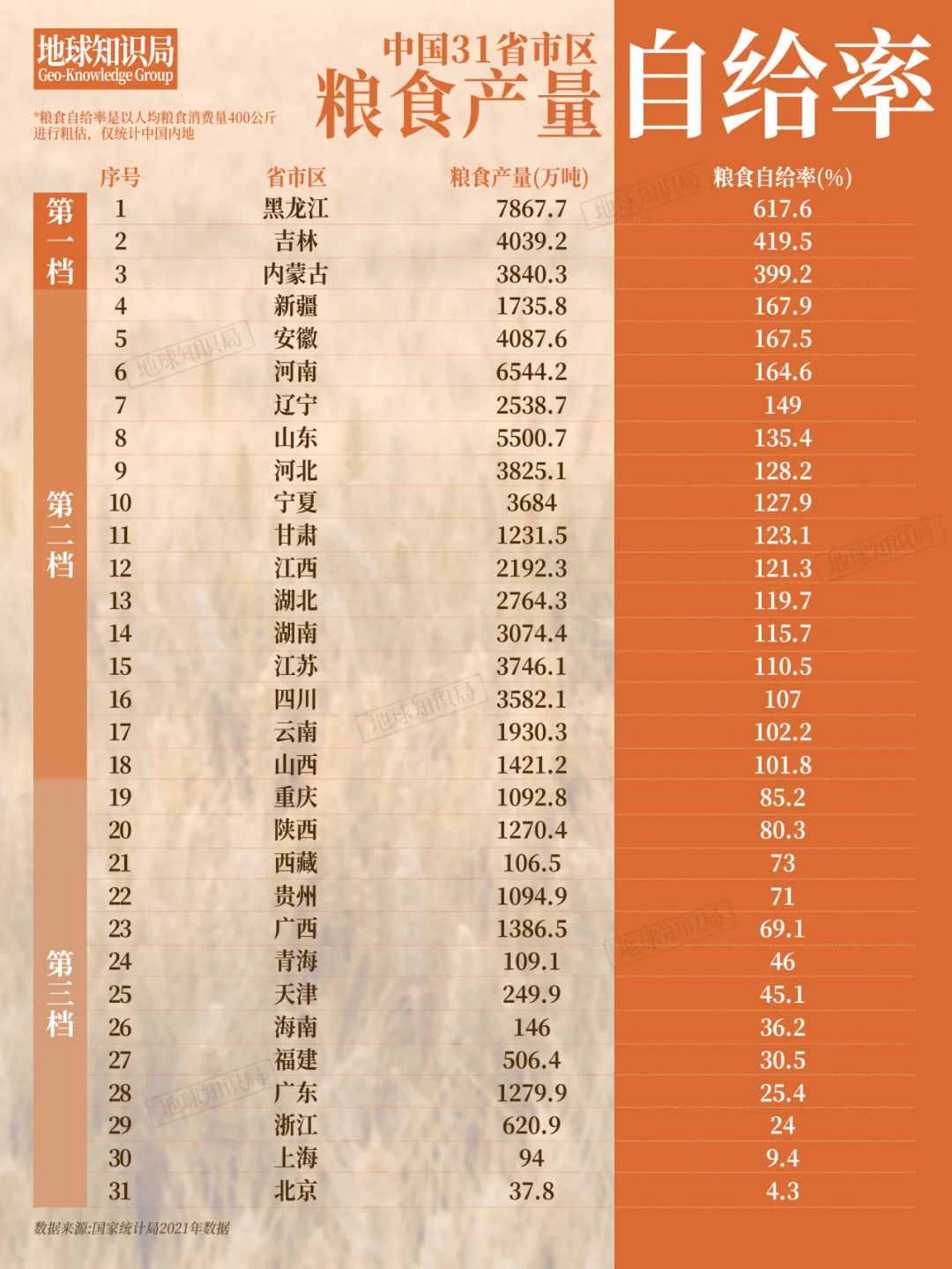 東北省份是400%、600%,新疆寧夏是小半餘量,西南省份這麼多人口居然勉強自給自足,吃的都是這一波技術+作物的紅利。