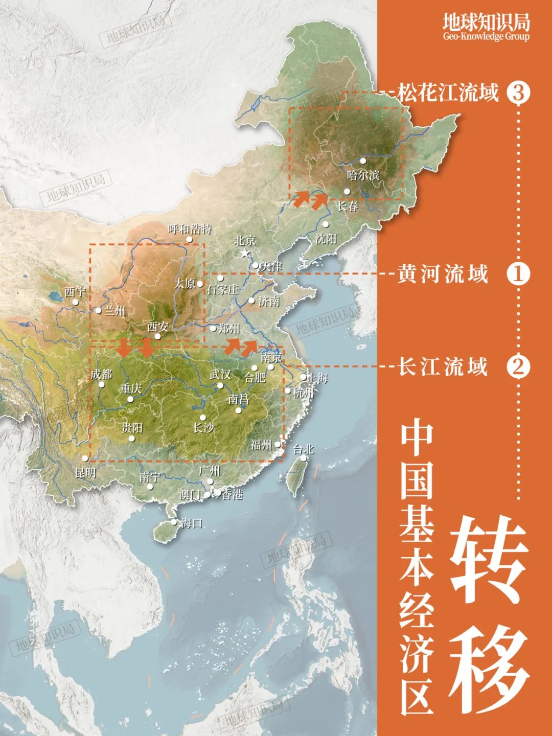 從黃河流域到長江流域再到松花江流域,中國的基本經濟區一直在轉移。