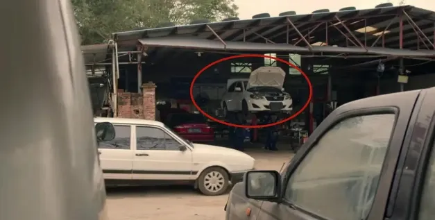 有一場戲很90年代,警察在工廠查案,結果一出來,警車上的備胎被偷了。