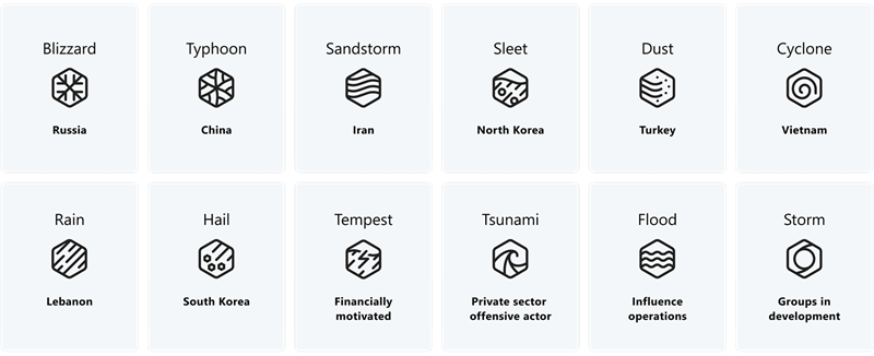 Microsoft轉向了與天氣主題一致的威脅參與者的新命名分類。 我們打算使用新的分類法為客户和其他安全研究人員帶來更好的清晰度。 我們提供一種更有條理、更清晰、更簡單的方式來引用威脅參與者,使組織能夠更好地確定優先級並保護自己,並幫助安全研究人員應對大量威脅情報數據。