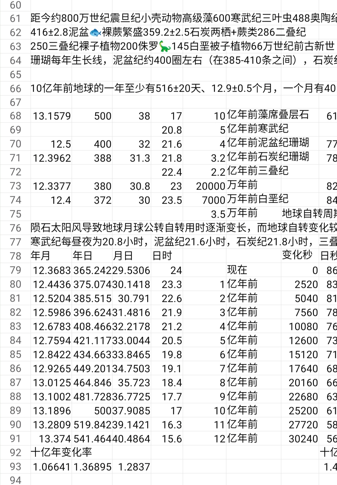 4.19億年前一年400日,二億年前一年380日,二説分別反推得18.9和18微秒