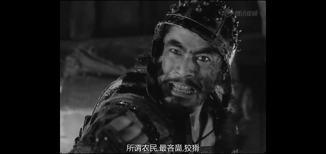 “你以為農民是善良,淳樸的麼,不,他們陰險,…表面上笑臉相迎,背地裏不知道做什麼勾當,昨天是農民,明天就可以是強盜,但是誰讓他們這麼做的呢?是你們武士,是你們的主人大名,他們只是想好好的活下去。”