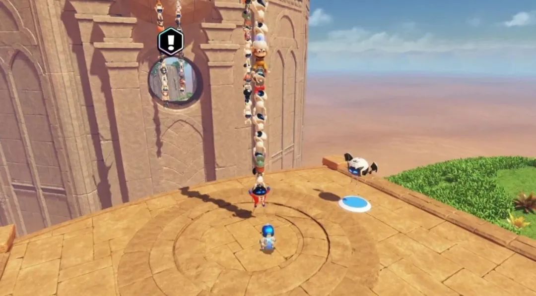 當玩家把這些小機器人收集到手後,它們又會化作大本營裏的氛圍組。每次飛船落地,就伴隨着所有遊戲角色的夾道歡迎;遇到基地裏過不去的障礙,它們又會一聲口哨下去立馬搭成人梯人牆,時刻提供着“隨時都能搖到人”的安全感。