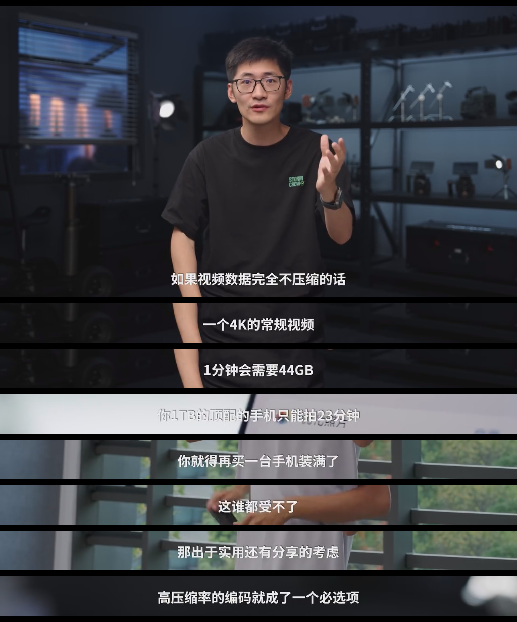 視頻開頭影視颶風的團隊就進行了科普,稱現如今很多上傳到平台上的視頻都會進行壓縮。其主要原因是因為如果不經過壓縮的話,視頻的容量會變得特別大。