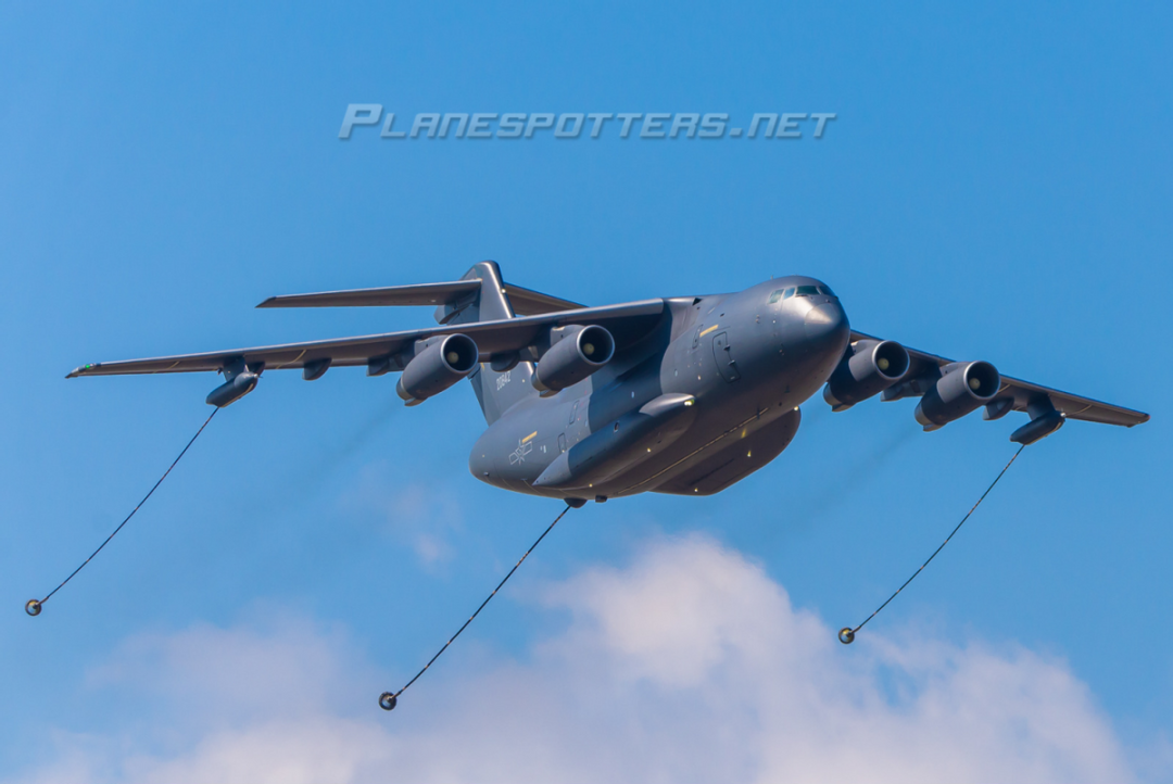 運油-20A系在運-20“鯤鵬”運輸機基礎上發展而來的一款空中加油機。該機貨艙內加裝有可拆卸式的大型油箱,與之鋪設的若干管路則會將其連通到機翼下的2套軟管加油裝置和機尾部的1套軟管加油裝置上。從而使其能夠同時為3架重型戰鬥機進行空中加油,此外也能夠為轟-6K轟炸機、空警-500空中預警機等大型軍用飛機加油。