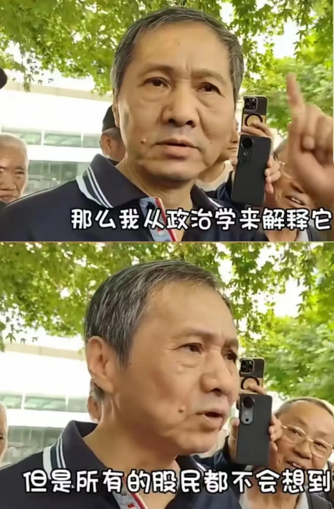 面對鏡頭,爺叔説,懂政治學就是他比其他股民高明的地方。