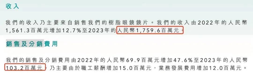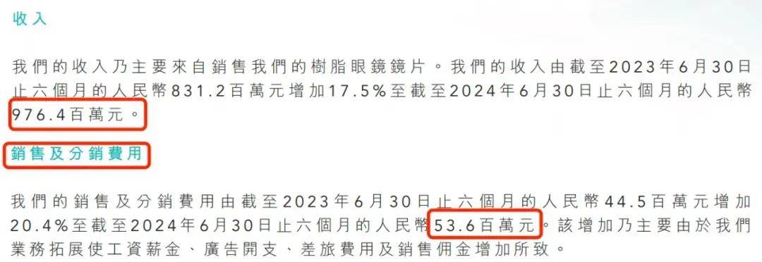 而公司的競爭對手之一康耐特光學(2276.HK),2023年和2024年上半年的銷售及分銷費用分別為1.03億元、5360萬元,收入分別為17.6億元、9.76億元,銷售及分銷費用佔當期營業收入的比例為5.86%、5.49%,遠低於明月鏡片。