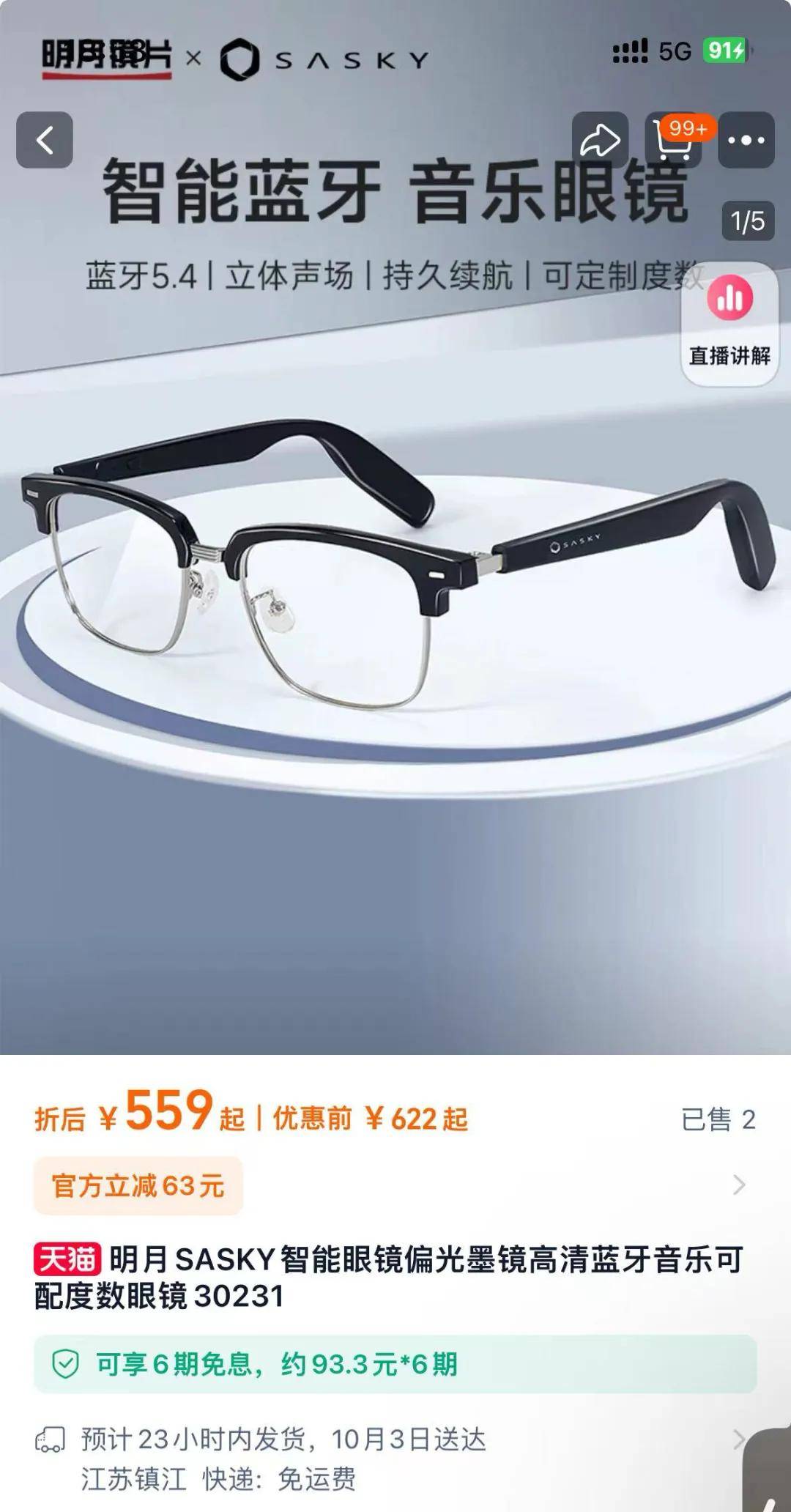 但是和Meta Ray-Ban相比,sasky的“AI智能度”尚有差距,消費者對sasky也並不買賬。明月鏡片天貓旗艦店顯示,sasky售價為559元起,僅售出2副。
