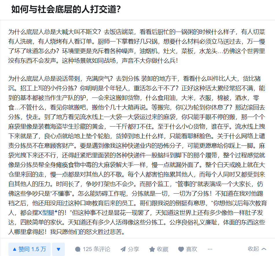最後,如果非要用一句話來總結,還是魯迅那句話,對底層人民要保有同情,但是又必須要遠離。