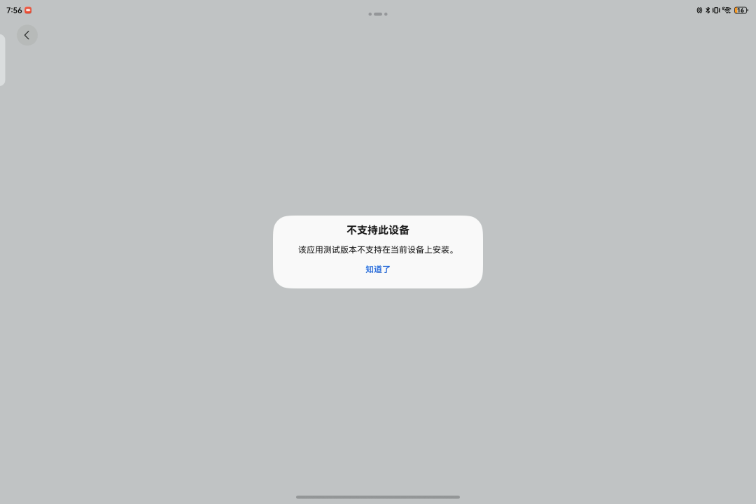 正好,除了手頭這台 Mate 60 Pro 之外,我們的一台 MatePad Pro 13.2 也升級了 HarmonyOS NEXT 。在手機端安裝成功後,我們也嘗試了使用同一個鏈接在平板上安裝微信,結果直接彈出 “ 不支持在當前設備上安裝 ” 。