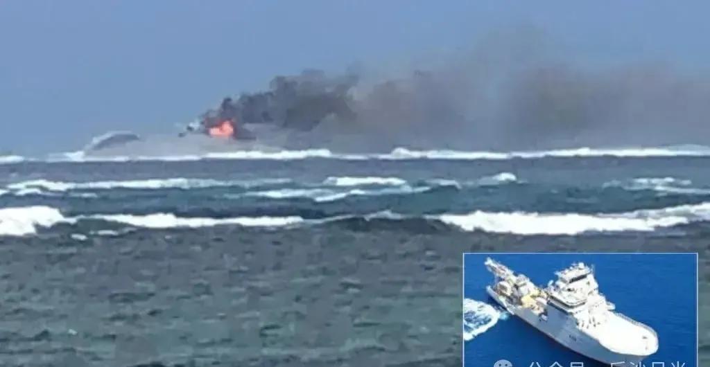 10月6日早上6點40分,該船嚴重傾斜,船上可見起火煙霧。