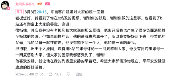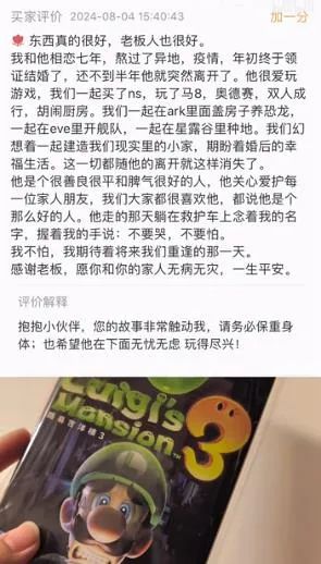 在另一期視頻裏,顧客給已故的好友送出Switch 和遊戲卡帶,還有一張寄給彼岸的信。老李在評論區貼出顧客的寄語,「我們彼此終會相遇」。