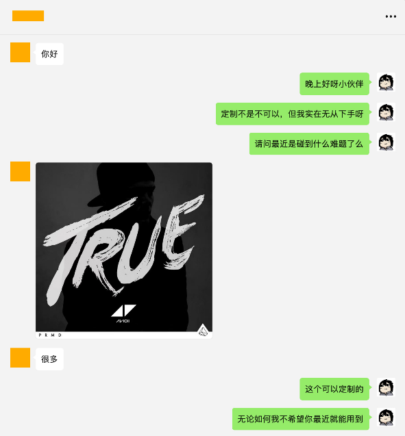 追問後得知,這位顧客 18 歲,打算輕生。於是老李回覆説,耳機外形複雜,定製價格要 400 元以上。老李愛財但不貪財,他想用價格勸退這位顧客,讓顧客放棄輕生的念頭。
