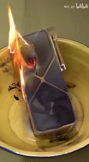 點火,金黃的火苗從顯卡左上角躍動到右下角,不到半分鐘,顯卡化作黑白間雜的紙灰,仍未熄滅的餘燼閃着暖光。