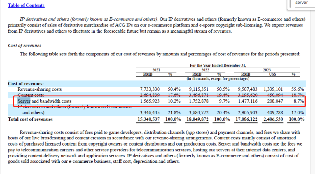再拿常見的長視頻平台來説, 2020 年全年愛奇藝在帶寬費用上的支出就達到了 24 億元;B 站 21 年的財報顯示一年下來帶寬費用也有 15 億,已經佔了全公司支出的 10% 以上,通過各種手段才降到了去年的 7% 。