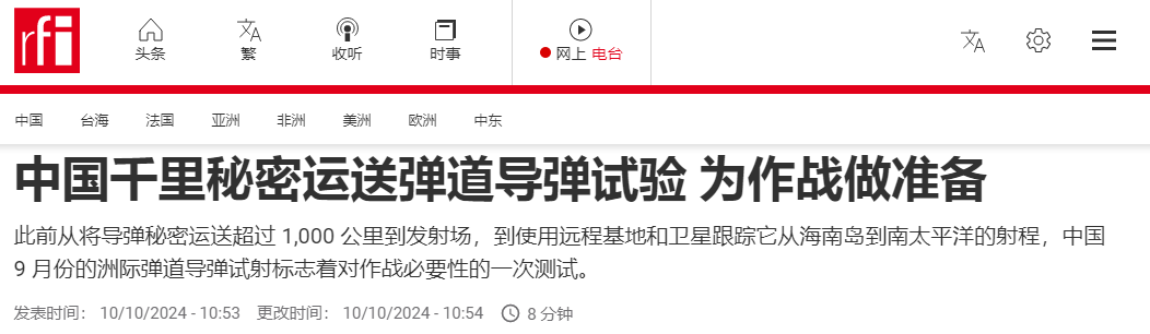 中國官宣向太平洋發射洲際導彈的全射程測試已經過去了兩週,西方情報部門總算回過神了。英國路透社10日引用西方情報分析師的話稱,在這次測試中,中國火箭軍經過精心組織,將這枚洲際導彈從上千公里之外秘密運送到海南的導彈發射陣地,“證明了中國核威懾力量能夠像其宣傳的那樣有效”。