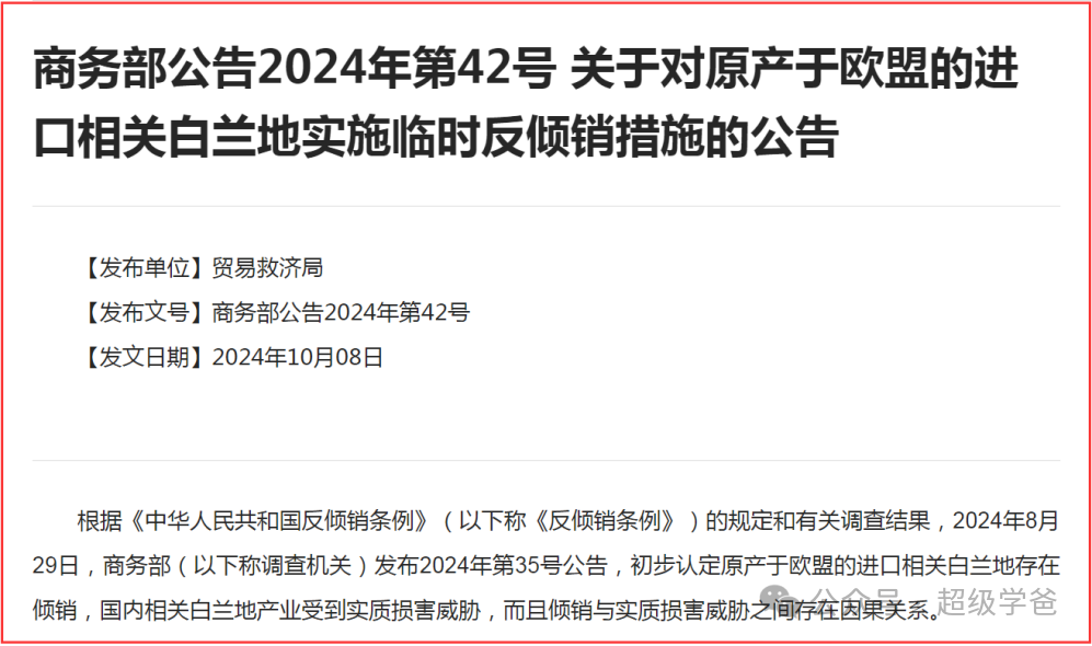 相信很多朋友已經看到新聞了,我們的對歐貿易自衞反擊戰已經打響。10月8日,商務部發布公告,將於10月11日對歐盟的白蘭地實施臨時反傾銷措施。