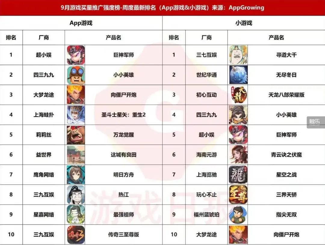 在小遊戲買量相關榜單上,三七互娛、世紀華通總是位居頭部
