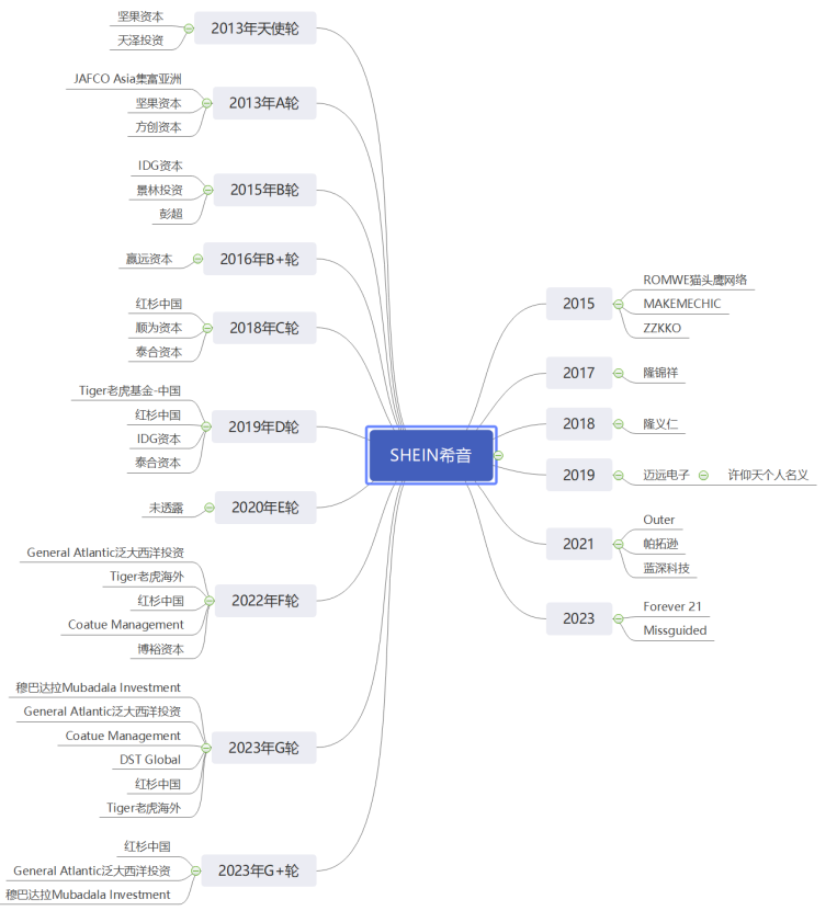 我們梳理了Shein可查詢信息中所有的資本來源及佈局,如下圖所示: