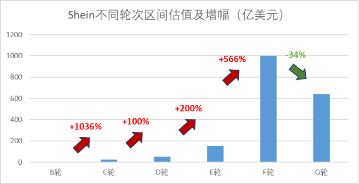 因此,就有一種觀點認為,Shein的G輪及G+輪的融資更像是估值縮水後補償F輪投資者的資本行動,畢竟兩輪融資間隔很短,且資方趨於一致。