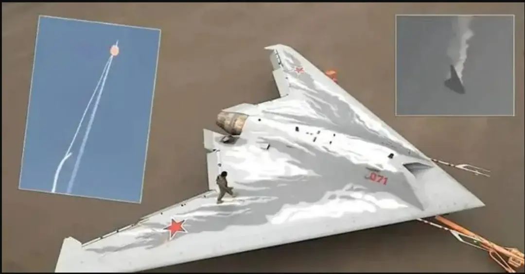全世界第一架在實戰中被擊落的隱身無人戰鬥機。在10月5日,一架俄羅斯空軍的蘇-57隱身戰鬥機,在頓涅茨克前線上空抵近發射空空導彈擊落了自己的“忠誠僚機”——S-70“獵人B”隱身無人戰鬥機。這可能飛翼結構隱身無人戰鬥機的首次在實戰中被擊落的戰例。