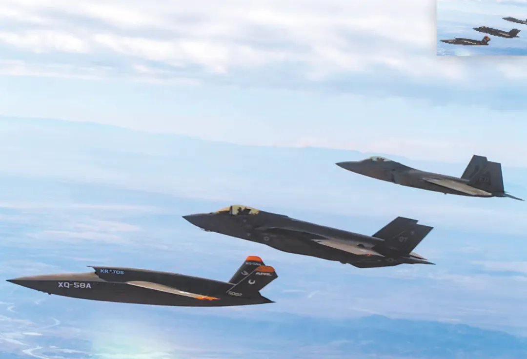 XQ-58A無人機與美國F-22、F-35戰鬥機進行編隊測試的資料畫面