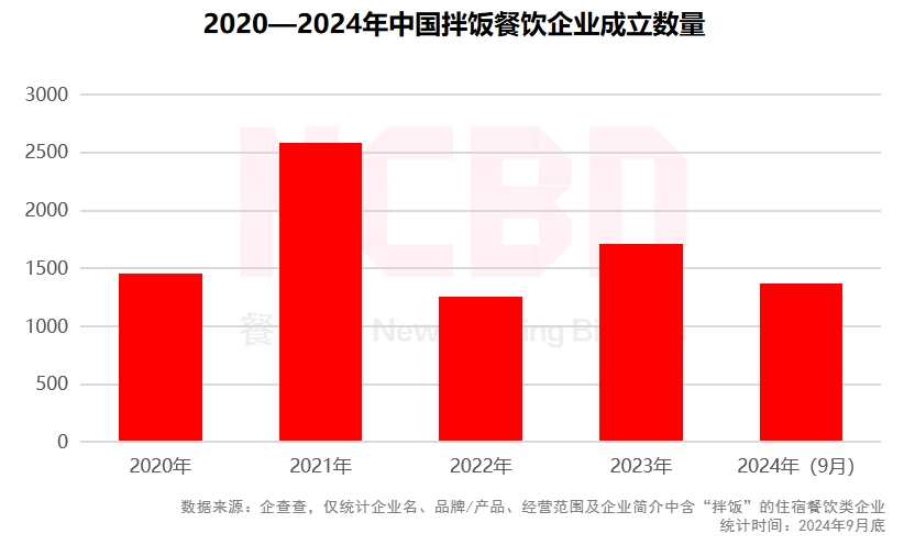 1、2023年,拌飯相關餐飲企業成立數量超過1700家;2024年1—9月,拌飯類餐飲企業成立數量達1373家