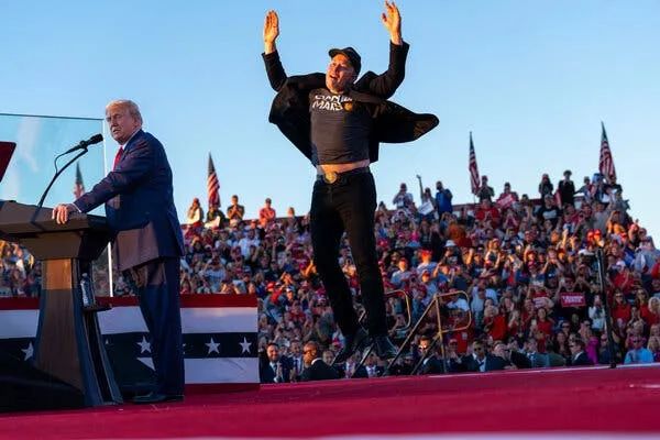 8)馬斯克發現,如果自己想在政治領域做點什麼,在政治領域成就自己的某些想法,改變美國(乃至世界)的發展路徑,最好的夥伴和平台就是特朗普/MAGA/共和黨——從基本的理念、到對一些基本問題的看法,到和領導人的溝通、共情、熟識。特朗普的共和黨都是最佳選擇。所以,雖然馬斯克以前是不太看得上特朗普的,甚至在特朗普當選第一任總統之後依然如此,但經過這些年,經歷了這麼多的事情,馬斯克對特朗普的認識有所更新和迭代,現在大概有點一拍即合、一見如故的感覺。所以,大家可以用心體會他在特朗普集會里放飛自我、開心一跳的那種感覺。