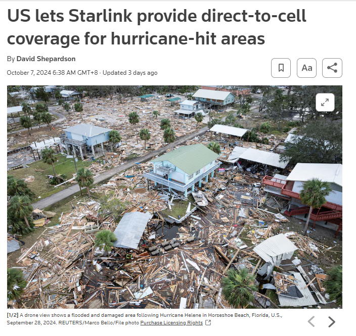 **5.北卡羅來納州救災遇到刁難:**説這兩天北卡羅來納州鬧災(颶風),Starlink派直升機去災區救援,為當地人提供互聯網,但遭到FAA(聯邦航空管理局)和FEMA(聯邦緊急措施署)的阻撓,不讓他們的直升機在災區降落,説前提條件是他們得提前知道要見的是誰,如果不知道要見誰的話就不讓降落。馬斯克説我們是去救災的,給當地人提供互聯網通信,他們都沒有了聯繫工具,所以我們才去幫他們,我們怎麼可能提前知道對方是誰呢?這不是刁難麼。説最後找了交通部長Buttigieg才幫助解決問題,並對Buttigieg進行了肯定。【這個事情,馬斯克前些天在X上大做文章宣傳,描述為FAA有意阻撓Starlink去救援,並且FEMA已經因為非法移民用盡了資源。他的説法當然也遭到這些部門的否認。對於馬斯克來説,首先他真心認為官僚體系不作為,其次他認為自己被區別對待,遭到民主黨政府的刁難和迫害;其三他對外宣傳這些事情也是有政治背景的:北卡羅來納州是特朗普和哈里斯爭奪的關鍵搖擺州之一,馬斯克的意思就是:民主黨政府對州民見死不救】