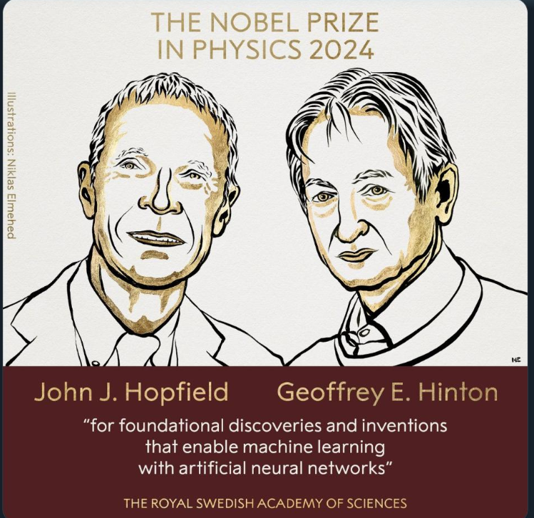 1. 諾貝爾物理學獎,居然發給了Hopfield和Hinton,這個絕對沒想到過。Deepmind的哈薩比斯等人獲得化學獎,這個倒是符合預期,AlphaFold預測蛋白質太成功了。對於學計算機的人,Hopfield和Hinton搞的神經網絡,最終會獲得諾貝爾物理學獎,非常迷惑。