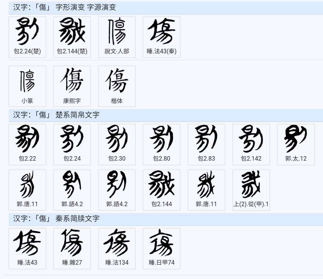 金文【揚(昜卂、日卂,昜玉卂、日玉卂、玉卂)、敭、瑒、禓】、楚簡帛文【傷(昜人、昜戈)、慯、㦹】互為異體分化字。
