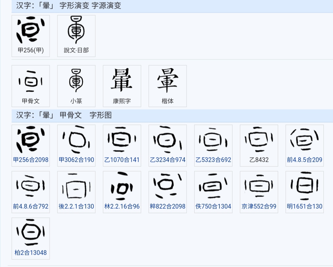 甲骨文【暈(日暈)、曇(圓虹)】互為異體分化字。詞例:翌壬申帝不令雨壬申暈。今其有禍甲午暈。