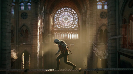 《刺客信條:大革命》中的巴黎聖母院就吸引了大量玩家前往實地參觀。遊戲不僅承載了豐富的歷史文化教育意義,還通過“發現之旅”模式允許玩家在沒有遊戲任務壓力的情況下自由探索歷史場景。事實上,今年巴黎奧運會的開幕式,也利用了這一遊戲的導覽元素。