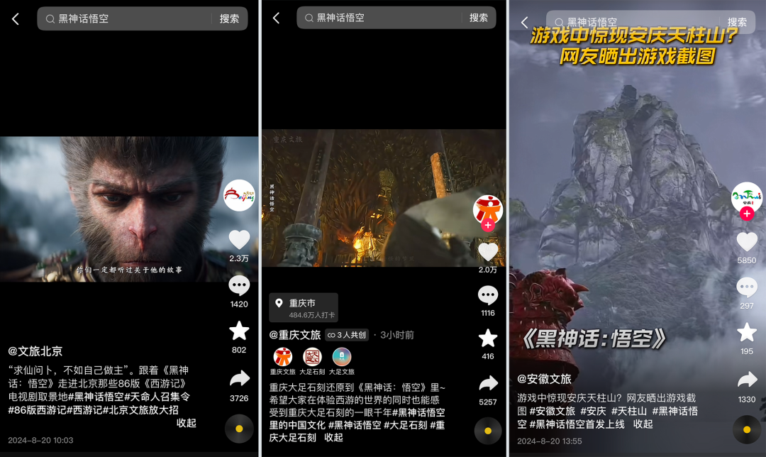 多地文旅部門展開《黑神話·悟空》相關傳播活動