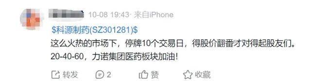 有投資者表示,科源製藥停牌,錯過了市場上漲的機會。