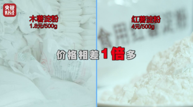 **為什麼要摻木薯呢?主要就是成本低。**木薯粉一斤只要1塊8毛錢,而紅薯粉一斤要4塊錢。可雨姐直播間賣的紅薯粉,是25塊錢5斤,平均每斤5塊錢。要知道,這個5塊錢裏面,既有廠家的利潤,還有主播的利潤,平台的抽成以及當地税收,全都在裏面了。