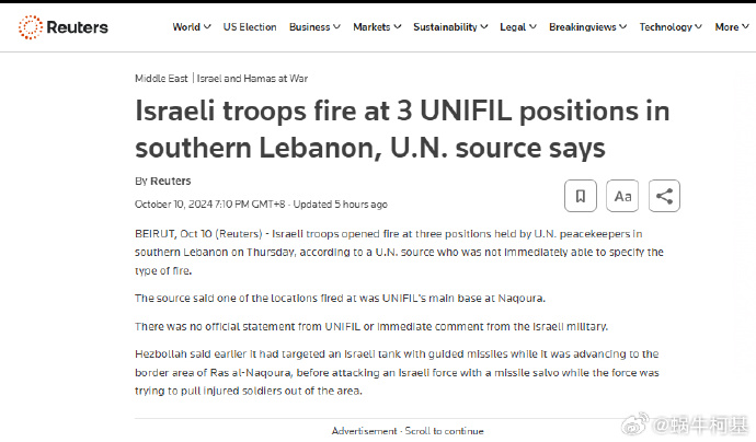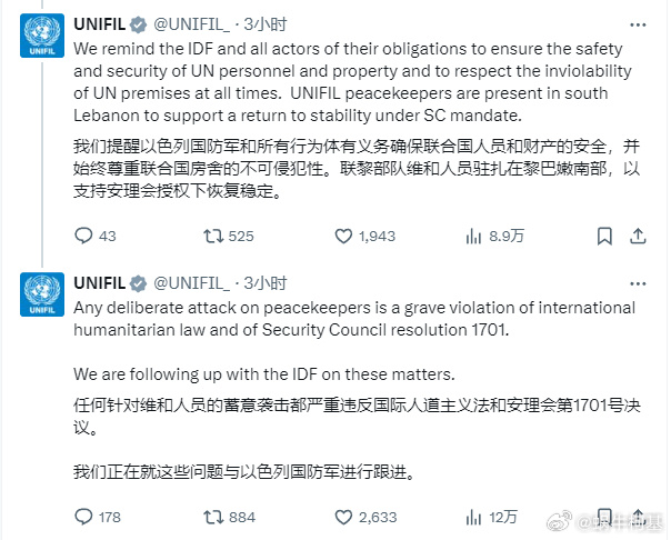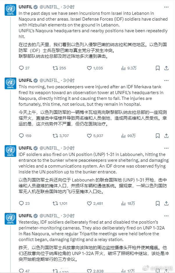 聯黎部隊在推特發表聲明稱遭到以色列軍隊襲擊,遭到幾百條親以色列留言圍攻_風聞