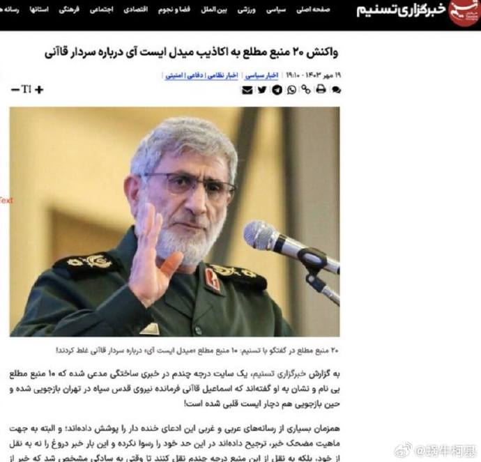 塔斯尼姆通訊社嘲笑中東之眼之前號稱引用10個來源證實卡尼被捕的假新聞。