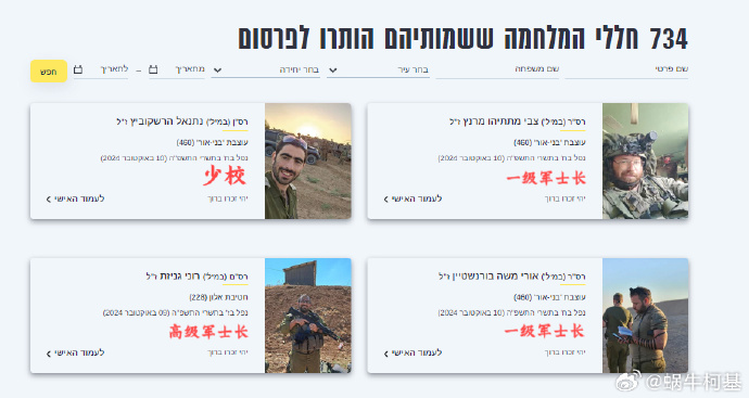 大發慈悲!以軍昨晚一口氣搖了四個號。其中三個屬於在加沙作戰的460裝甲旅,包括一名少校