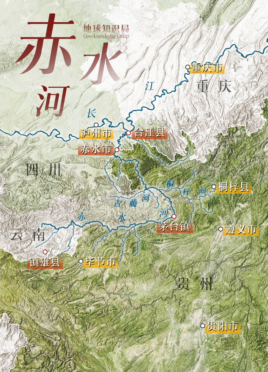 赤水河是一條位於貴州與四川交界的長江一級支流,源於雲南省昭通市的鎮雄縣,沿川黔邊界流至貴州茅台鎮後,吸納支流桐梓河、古藺河至赤水市,最終在四川省合江縣注入長江。