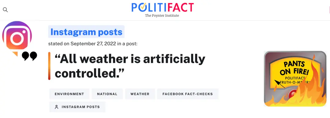 2022年,事實核查網站PolitiFact就曾對Instagram上一則聲稱颶風可以被控制的視頻進行過闢謠。
