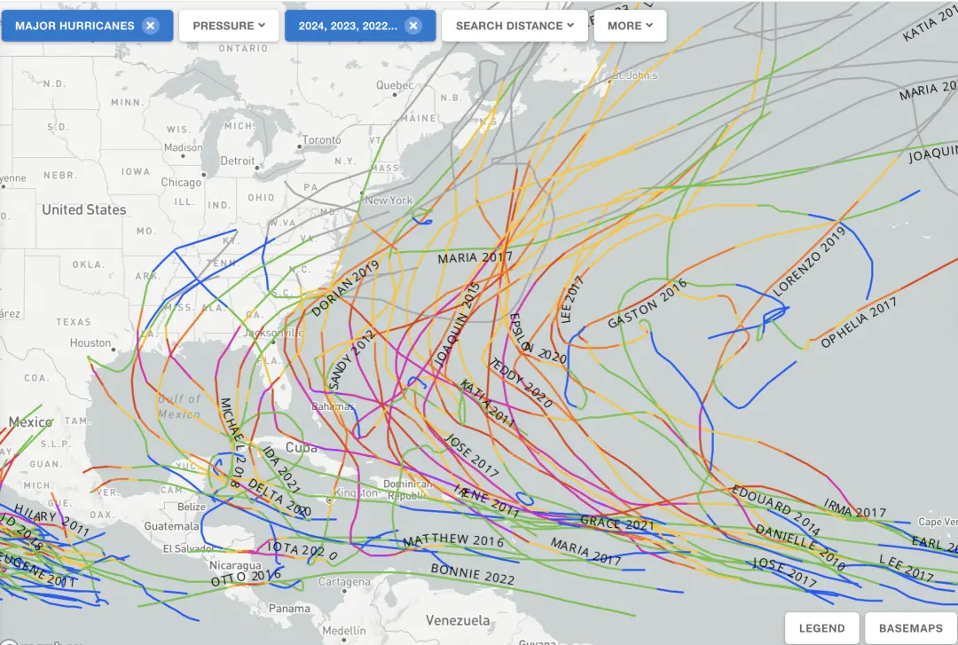 2010年以來美國東部颶風路線圖來源:NOAA歷史颶風數據庫
