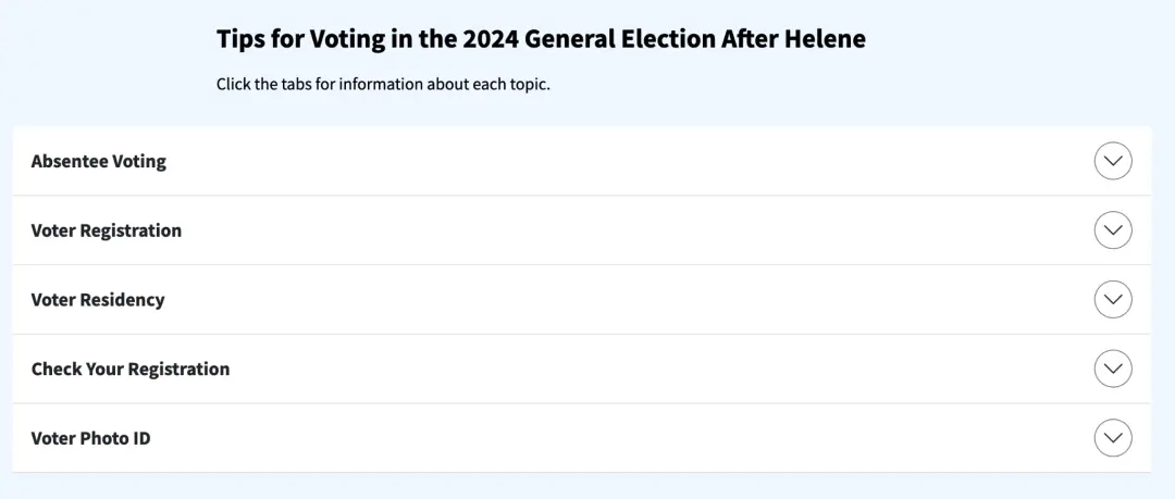 北卡州搭建了專題頁面可查詢颶風海倫過後與選舉有關的幫助信息