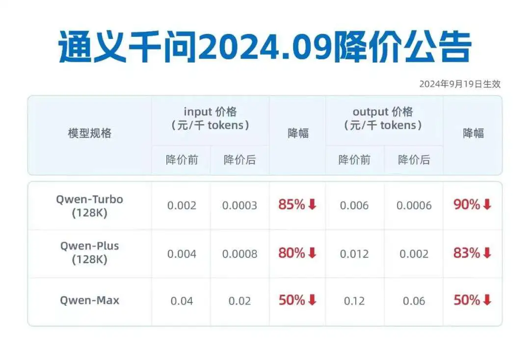 實際上,自豆包把價格降到“冰點”時,其他大模型廠商已開始紛紛跟進。例如,阿里巴巴旗下的通義千問大模型產品,就曾多次降價,降價幅度也令人瞠目結舌。