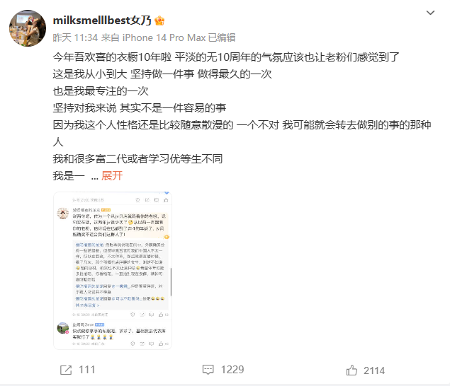 張大奕表示,隨着互聯網個平台的發展 流量爭鋒的時代 我們也做過夾心餅乾 經歷了 不能轉 也不敢轉平台 真想轉了 又沒有這樣的勇氣怕撿了芝麻丟了西瓜……所以吾歡喜的衣櫥 裙子君 Jupevendue 我打算把他無限期延遲上新 嗯 算是關店吧 確實做不到大家滿意 索性就讓他停止在這一秒。