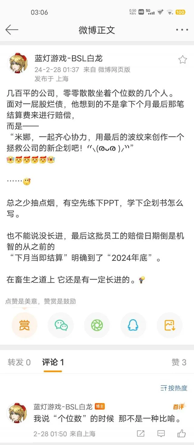 作為對比,同樣是散爆離職成員組的團隊,新項目《霧境序列》磨磨蹭蹭到2023年底才上線,結果死得悄無聲息。當年留下“微博辦公”名梗的製作人白龍不但救不了項目,自己也只落得欠薪的結果。