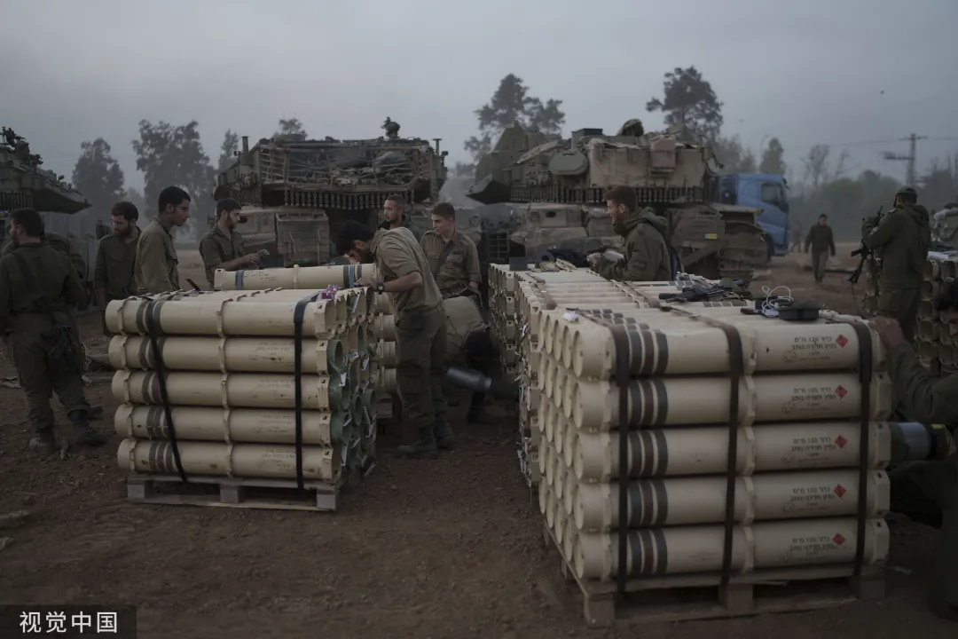 今年1月,以軍炮兵部隊士兵在一處陣地儲存坦克炮彈 。(圖源:視覺中國)