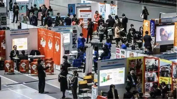 三月中旬一個陽光明媚的週五,在東京的一場大型招聘會上,大約100家公司精心佈置了自己的展位,五顏六色的橫幅搶奪着畢業生的注意力:“起薪25萬日元,無調動”“超過120天帶薪假期”“豐富的培訓制度”“實施多樣化的工作方式”“在東京證券交易所上市”。